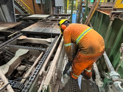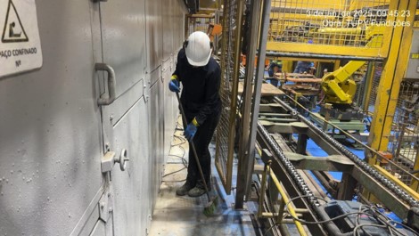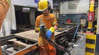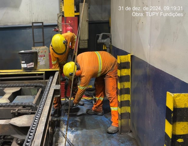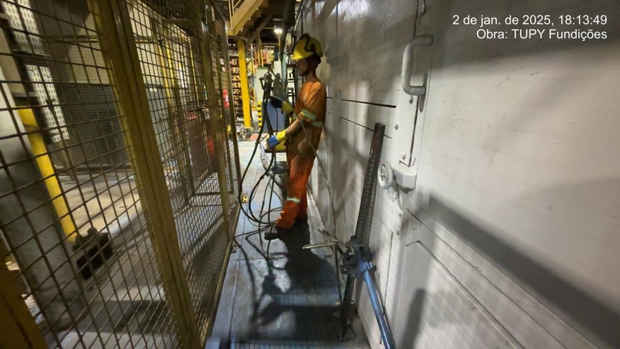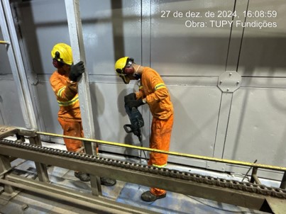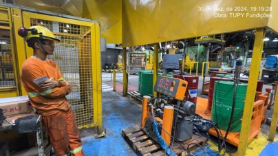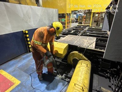 A indústria de fundição enfrentava recalque diferencial do piso sob suas estufas contínuas. Essa deformação, visível na estrutura, comprometia a operação e a integridade. Recalques em fundações podem ser causados por vários motivos, entre eles: solo instável, variações de lençol freático ou ataque químico, exigindo uma solução rápida e eficaz.